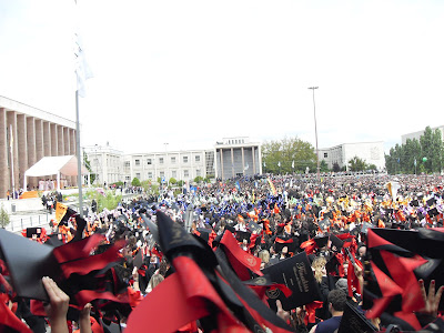Hoje, passados seis anos, despedimo-nos com um abraço forte e um beijo sentido, mas as lágrimas já não são presença habitual. A minha mãe, um doce que só ela, fica a acompanhar com o olhar os meus passos até eu desaparecer no horizonte (fofa, adoro-te!!), mas já faz isso com um sorriso no rosto. Também porque sabe que, se há seis anos eu vinha para cá como quem vai para a cadeira eléctrica (estou exagerando pouco), hoje venho com outro sentimento. O de quem volta para a sua vida, para a sua rotina, para a sua casa. Porque agora é aqui a minha casa. Por mais estranho que possa parecer, agora é aqui que está a minha vida. Embora parte do meu coração esteja lá longe, com a minha família.