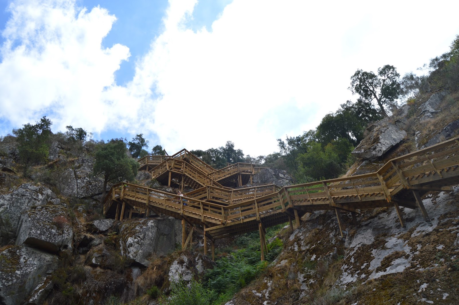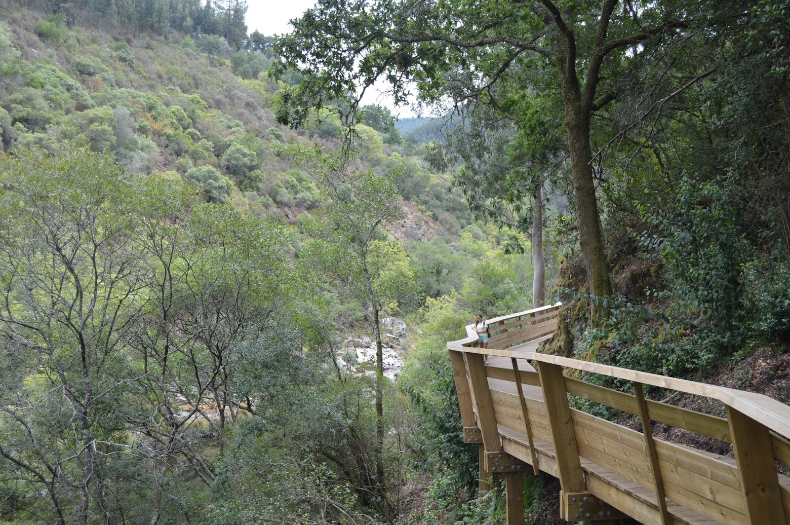 Por volta do início do julho, ansiava eu pelas duas primeiras semanas de férias que ia tirar no verão, quando olhei para o meu calendário no que toca ao mês de agosto e ia tendo um desgosto: nem um diazinho de férias marcado. Temendo pela minha sobrevivência até setembro (altura em que vou ter aquilo que espero que sejam uma das melhores, senão mesmo as melhores férias deste ano, pelo que convinha aguentar firme até lá) iniciei as minhas pesquisas e deparei-me com isto: Passadiços do Paiva. Ora, tudo o que alia natureza a caminhada é coisa para me fazer feliz, e as imagens eram de tal forma cativantes que lá fui eu imediatamente para o Booking pesquisar por alojamento nas redondezas (Arouca). Ficámos a aproximadamente 20 km dos Passadiços, num lugar muito simpático (provavelmente falarei dele num próximo post) e ontem de manhã lá seguimos caminho. Começámos a caminhada numa das pontas do trajeto (Espiunca) eram 11h30. O tempo estava cinzento, mesmo a convidar ao passeio.
