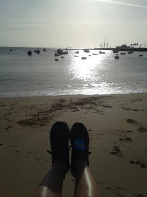 Mais uma vez os senhores do IPMA falharam, e estava um dia lindo de sol. A prova começou na baía de Cascais e foi até ao Guincho. Começou com uma subida do demo, continuou com muito vento na ida, e sem vento nenhum (e um sol abrasador) na maioria do regresso. Das quatro provas que já fiz entre os 20 e os 21 km, esta foi sem dúvida a mais difícil (ainda por cima a única coisa que nos deram durante a corrida foi água. para 20 quilómetros!). A partir do 15º quilómetro comecei inclusive a dizer que detesto correr (é mentira, hoje já gosto outra vez) e já só queria que os meus amigos, que estavam a ser uns autênticos queridos comigo, me deixassem fazer a minha velocidade mais calma e fossem à vida deles (é bom ter alguém a puxar por nós, mas detesto sentir que estou a empatar, e não estava a conseguir acompanhar a pedalada deles).