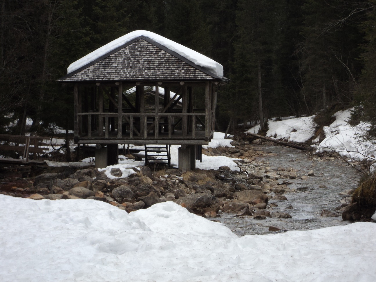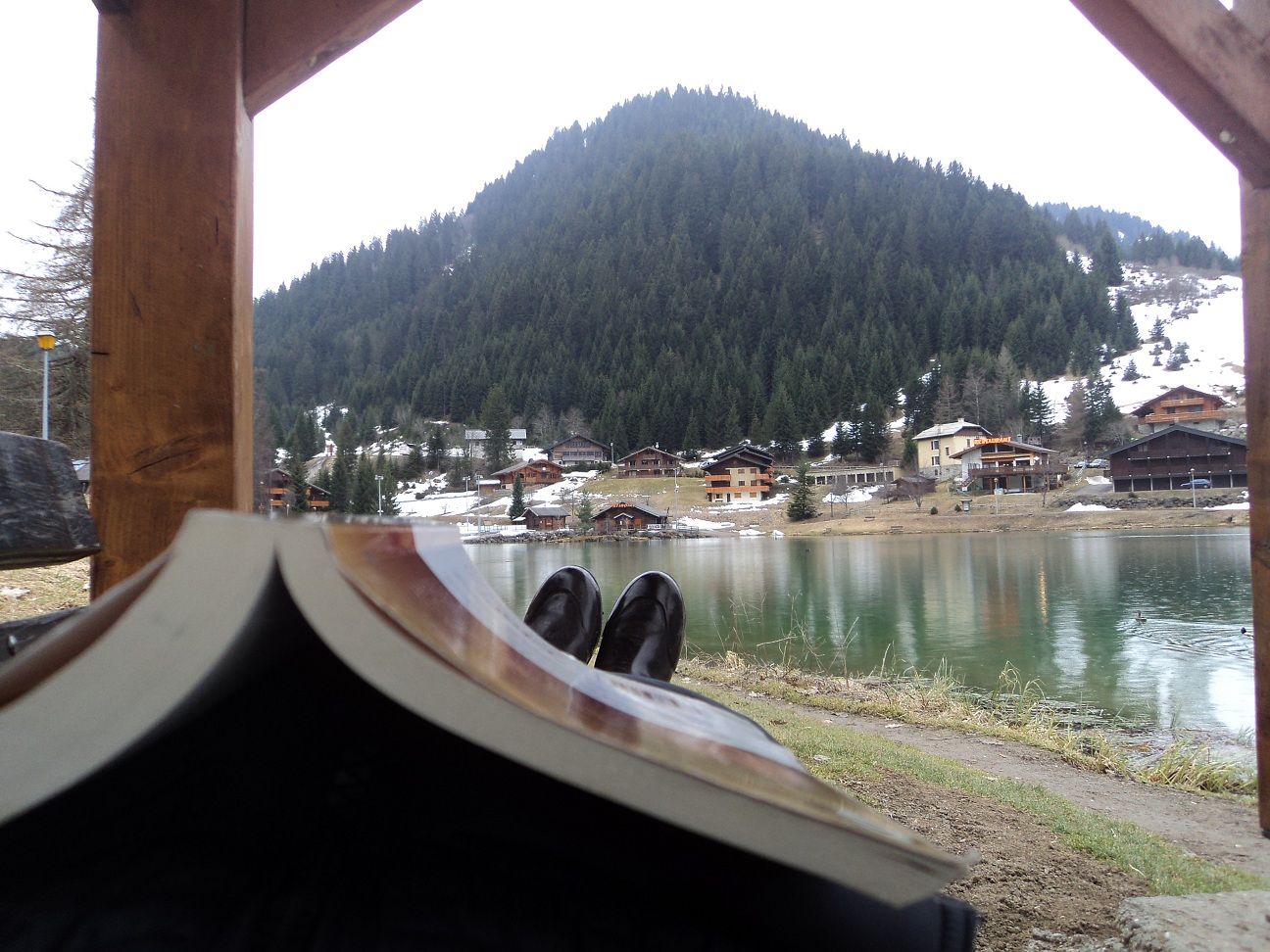1.º: Acordámos, abrimos a janela, e deparámo-nos com um dia cinzento, vento e neve (muita neve):